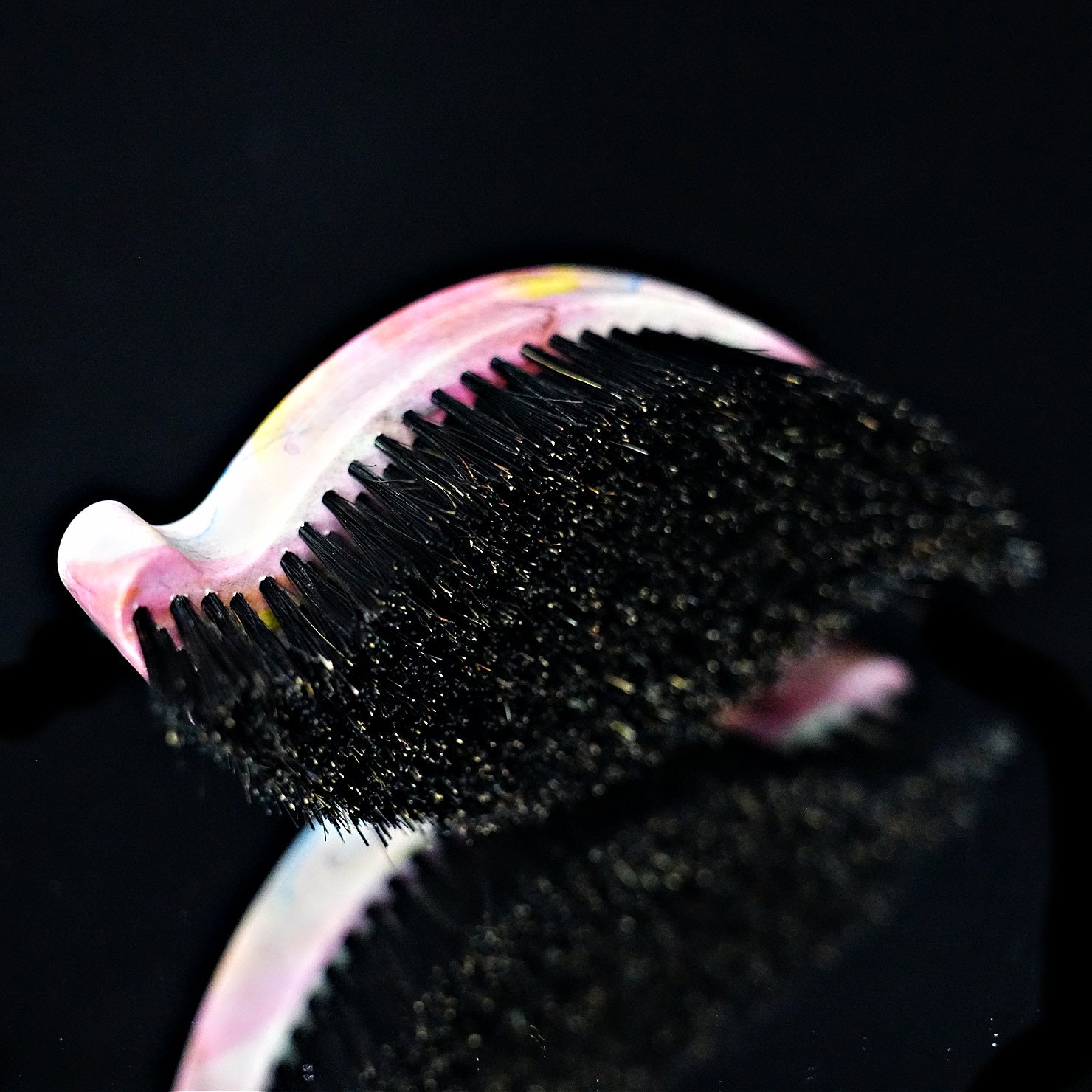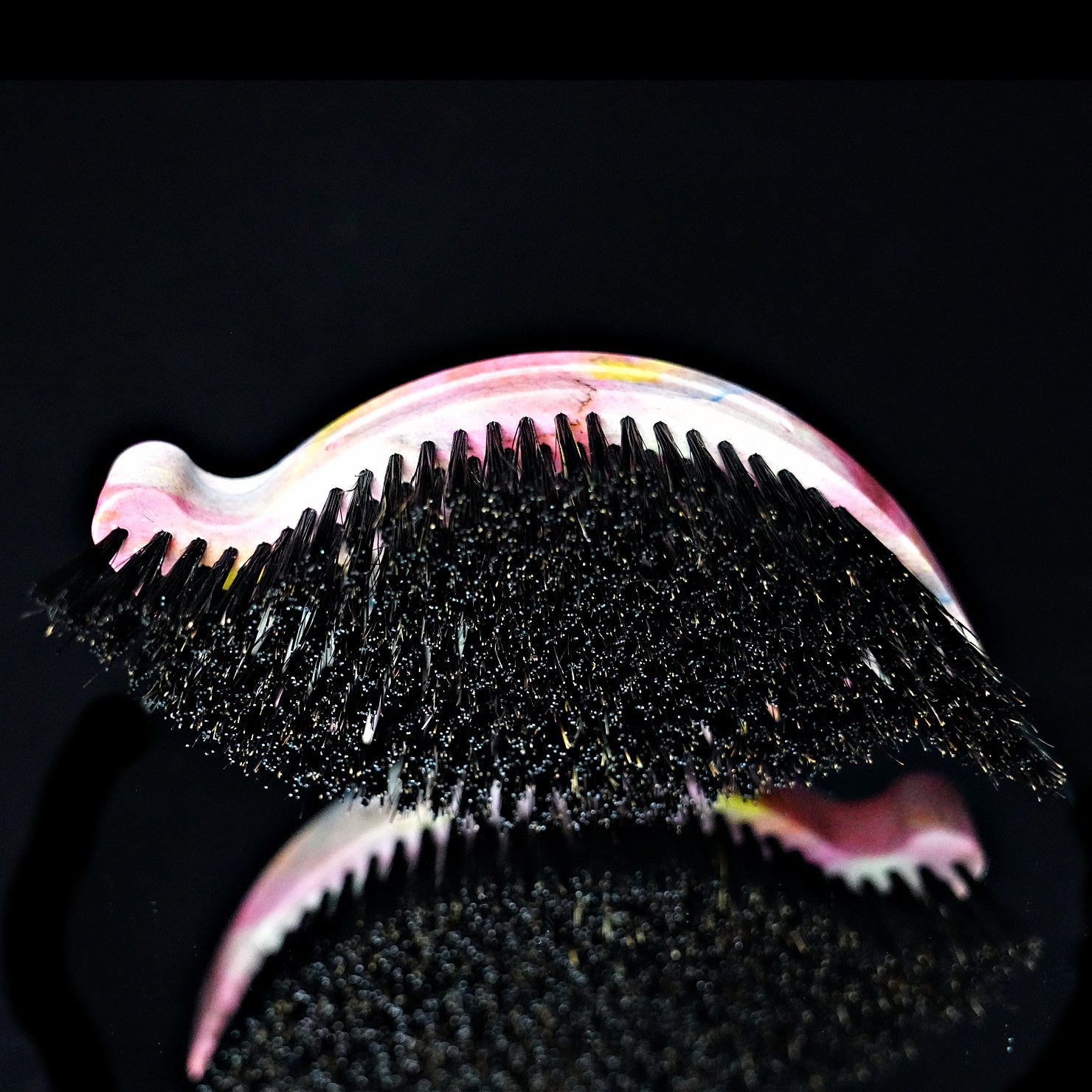 High Quality 360 Wave Curve Boar Bristle Brush for both Men and Women, A Unique Acrylic Palm Handle, Made with 100% Medium Boar / Reinforced White Mix Bristle, Transfers Natural Oil down the Shaft to Create a Natural Shine, Stimulate Scalp and Promotes Hair Growth, Conditions and Strengthens hair to Reduce Breakage.